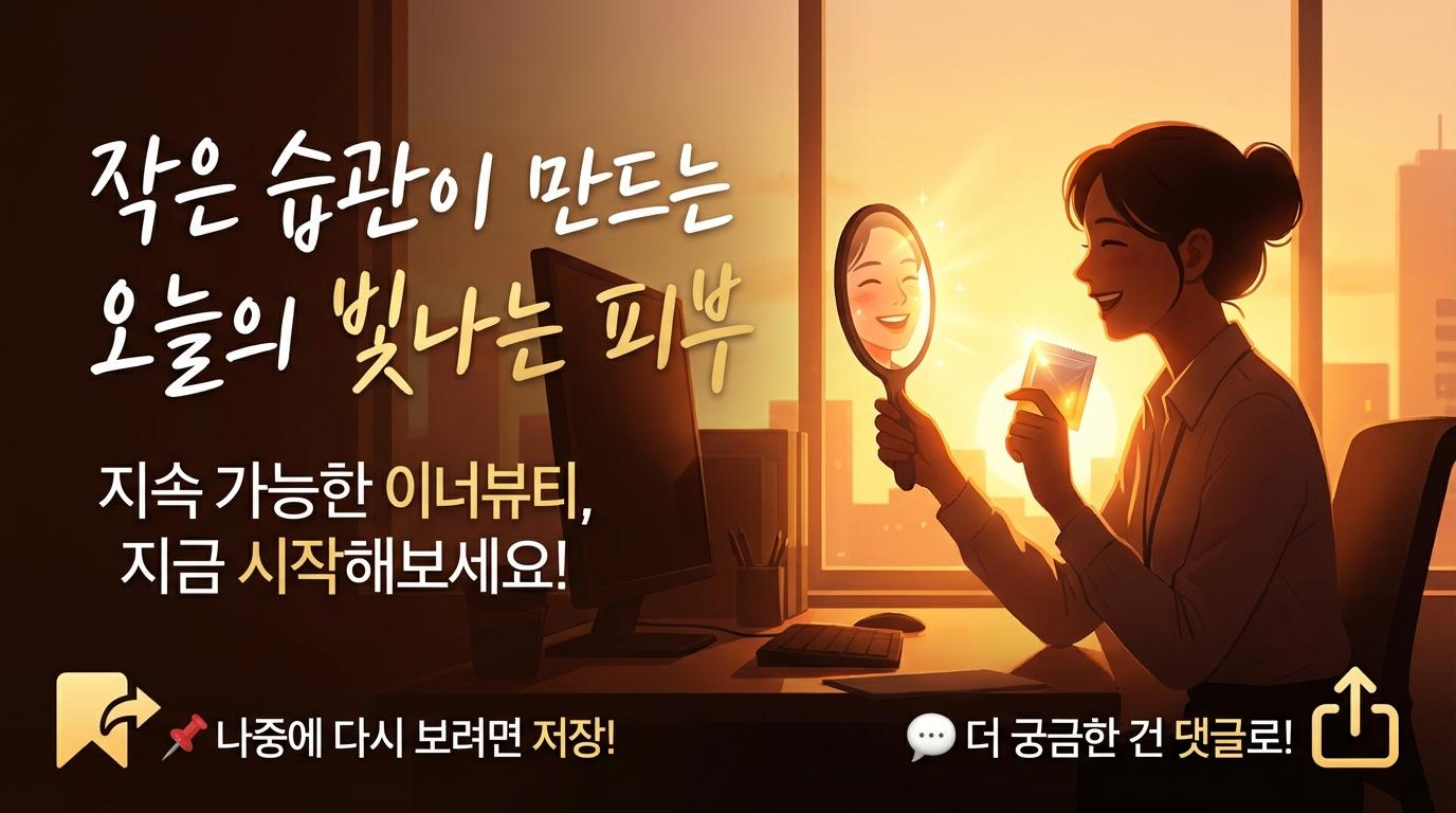 피부 관리는 거창한 것이 아닙니다. 가방 속에 넣어둔 콜라겐 젤리 한 포를 꺼내 먹는 그 짧은 시간이 쌓여 건강한 피부 생기를 만듭니다. 오늘부터 나를 위한 가장 쉬운 투자, 휴대용 콜라겐 스틱으로 지속 가능한 이너뷰티 루틴을 시작해 보세요. 내일 아침 거울 속의 모습이 조금씩 달라지는 것을 경험하실 수 있을 거예요!