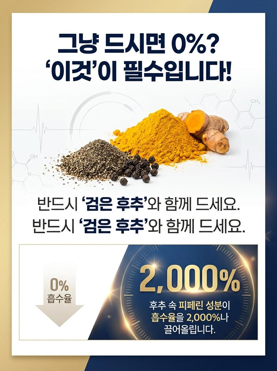 오늘은 커큐민 효능 5가지를 상세히 알아보고, 흡수율을 2,000%까지 끌어올리는 효과적인 강황 가루 복용법을 정리해 드립니다. 이 글을 끝까지 읽으시면 염증 관리를 위한 가장 확실한 가이드를 얻으실 수 있습니다.