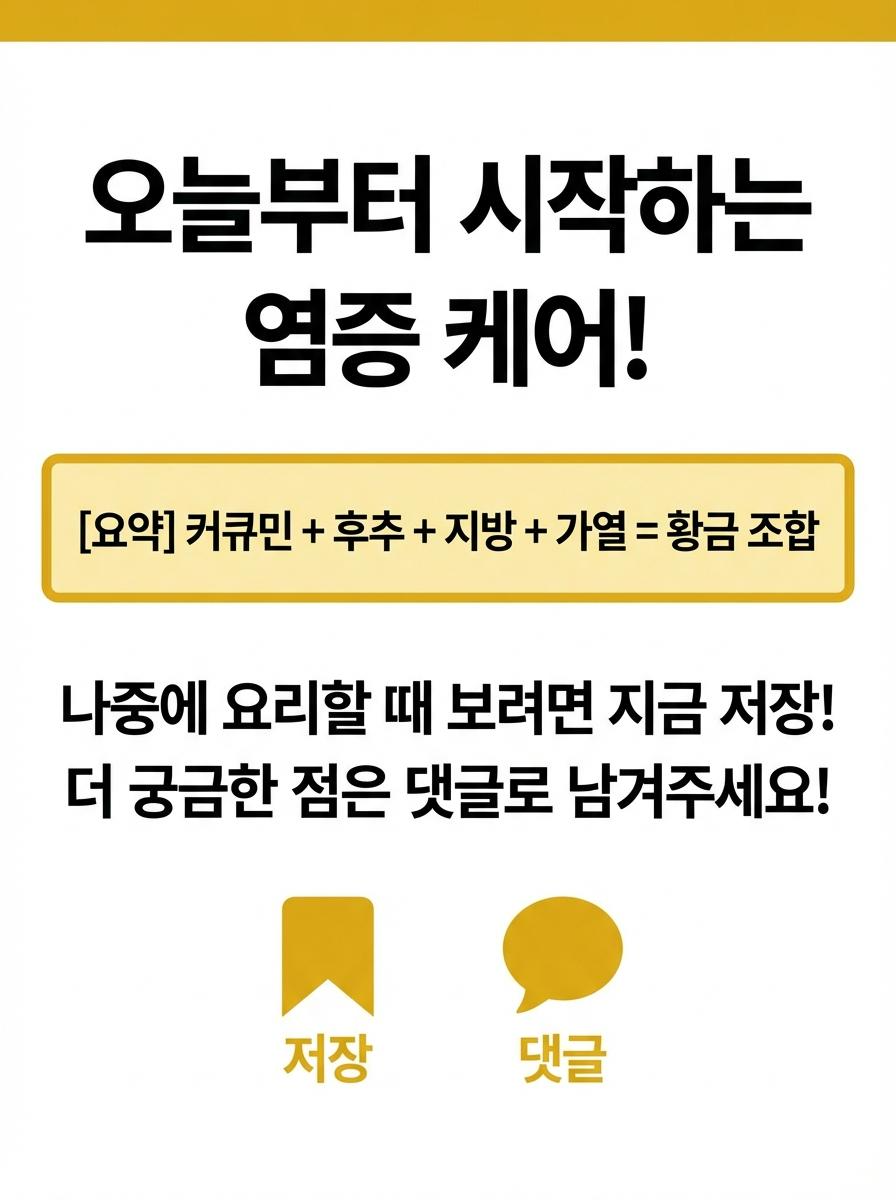 오늘 소개해 드린 커큐민 효능과 올바른 강황 가루 복용법을 통해 일상 속에서 만성 염증을 다스리고 더 건강한 활력을 되찾으시길 바랍니다. 작은 식습관의 변화가 건강한 미래를 만듭니다.