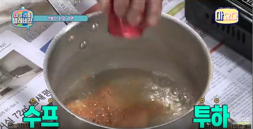 1. 물을 끓이면서 스프를 먼저 넣습니다.