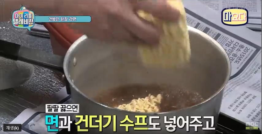 3. 라면이 어느정도 풀어지면 된장을 투하해주세요.